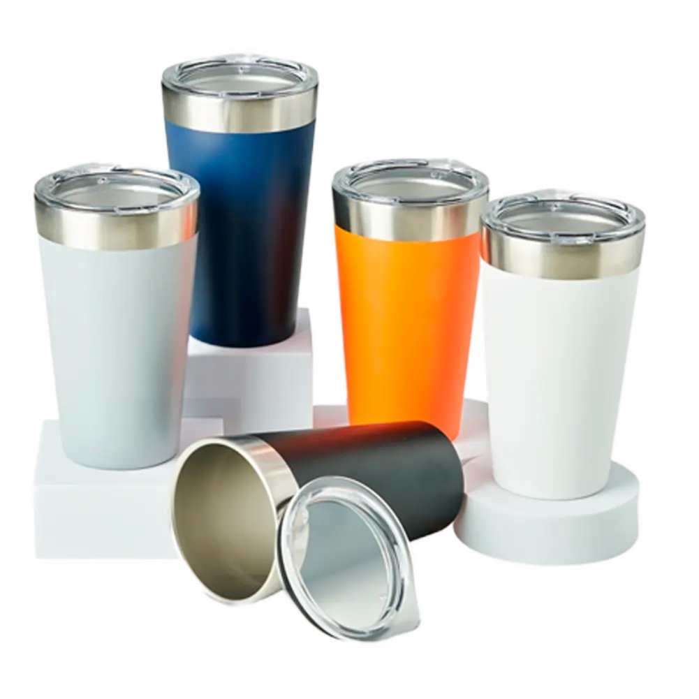 Copo térmico em inox com capacidade de 473ml, acompanha tampa com vedação. Ideal para manter bebidas na temperatura por mais tempo.