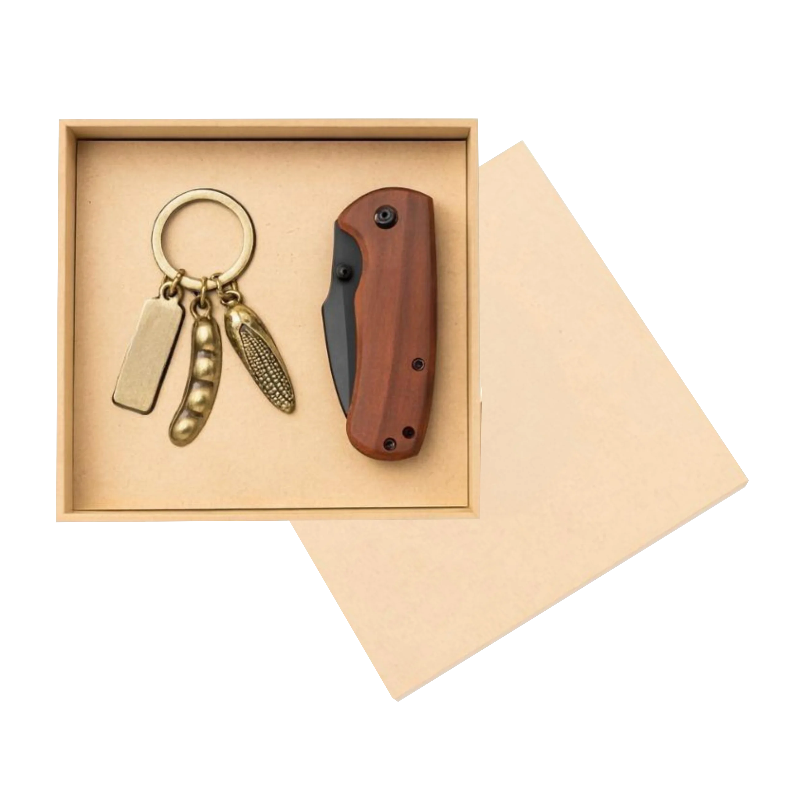 Kit exclusivo com canivete de lâmina afiada e chaveiro estilizado, ideal para quem aprecia funcionalidade e design. Perfeito como presente ou para uso pessoal, combinando estilo e praticidade em cada detalhe.”