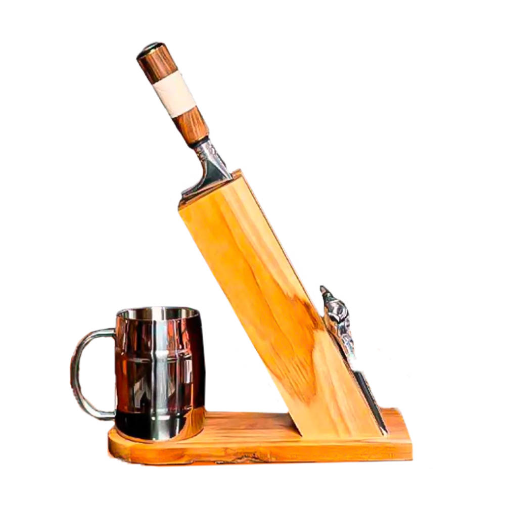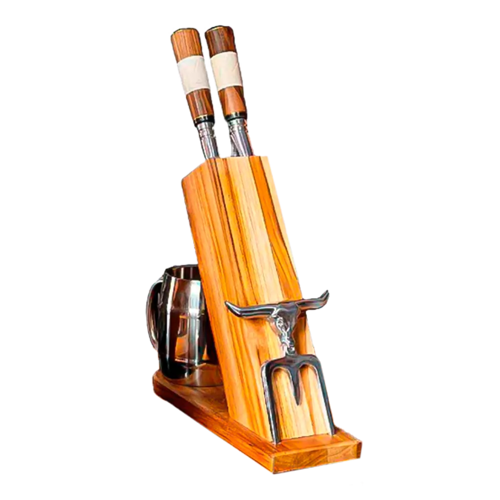 O Kit é composto por 4 peças, sendo uma faca 08 polegadas, um afiador, uma caneca inox e uma garra urso. Faca de excelente qualidade, em aço 420 inox .